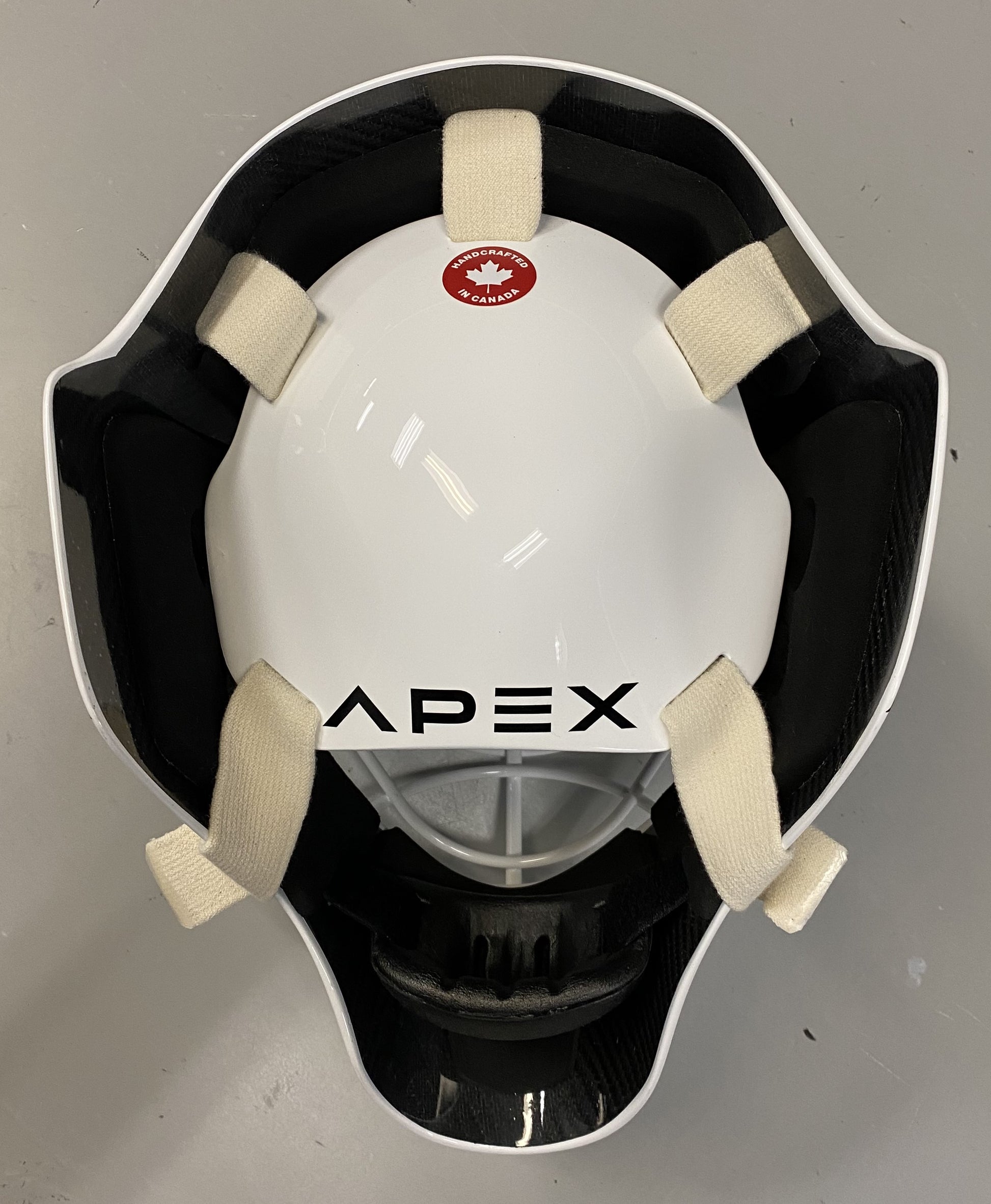 The Apex Low-Density Neoprene Foam Liner System features an upgraded 360-degree design that will improve comfort and protection by placing more cubic centimeters of foam inside the mask. The Canadian-made Apex Stainless Steel Certified wire grid cage has been re-designed to offer greater durability and is mounted to the shell at six locations with stainless hardware and impact & vibration dampening rubber washers. Five individual 1” polyester elastic, hardware-less straps make up our “open” backplate system and allow the goalie to truly dial in their specific fit.